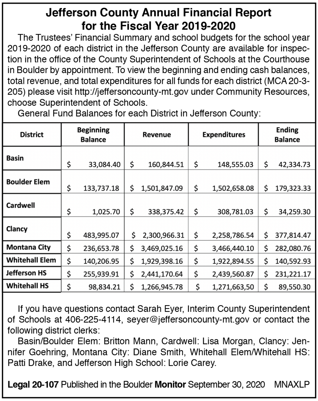 Notices 20-107: Annual Financial Report October 1, 2020 0 6 Share FacebookTwitterPinterestWhatsApp 20-10720-107. RELATED SOLICITATION FOR PRICE QUOTES ON HERBICIDES February 23, 2026 City of Boulder: INVITATION TO BID February 17, 2026 NOTICE OF SHERIFF’S SALE February 4, 2026 Declarations for Nomination February 4, 2026 Share FacebookTwitterPinterestWhatsApp Previous article20-109: Public Meeting NoticeNext article20-110: Notice of Public Hearing - Advertisement - - Advertisement - LATEST NEWS Jeffrey Bate, 64, ranch hand March 25, 2026 Don’t let corporations control our politics March 25, 2026 At town hall, Downing opines on data centers, lands March 25, 2026 New youth mental health council gathers March 25, 2026 City looks to wastewater expansion March 25, 2026