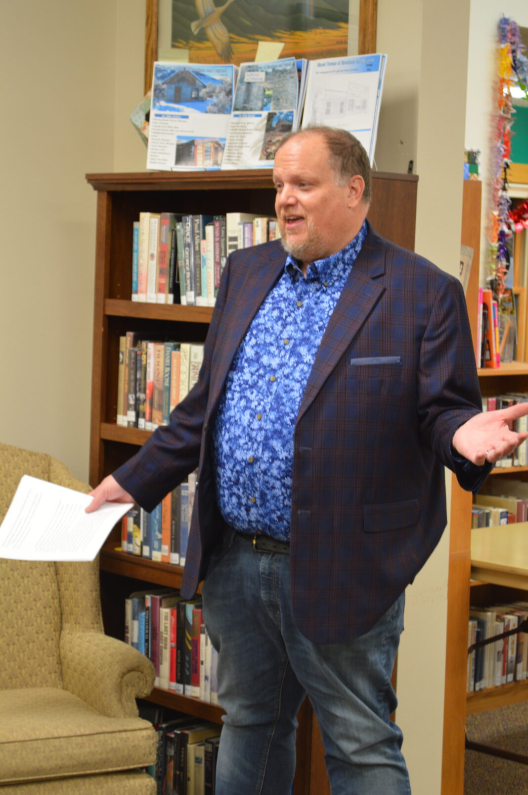 Author Craig Lancaster engages patrons and public at the author event on Jan. 25 at the Boulder Community Library. Lancaster has written 11 books, including his first novel, “600 Hours of Edward,” which the library book club just read. Following his presentation, Lancaster answered questions about Edward. The event was put together by Friends of the Boulder Community Library. (Charlie Denison/The Monitor)