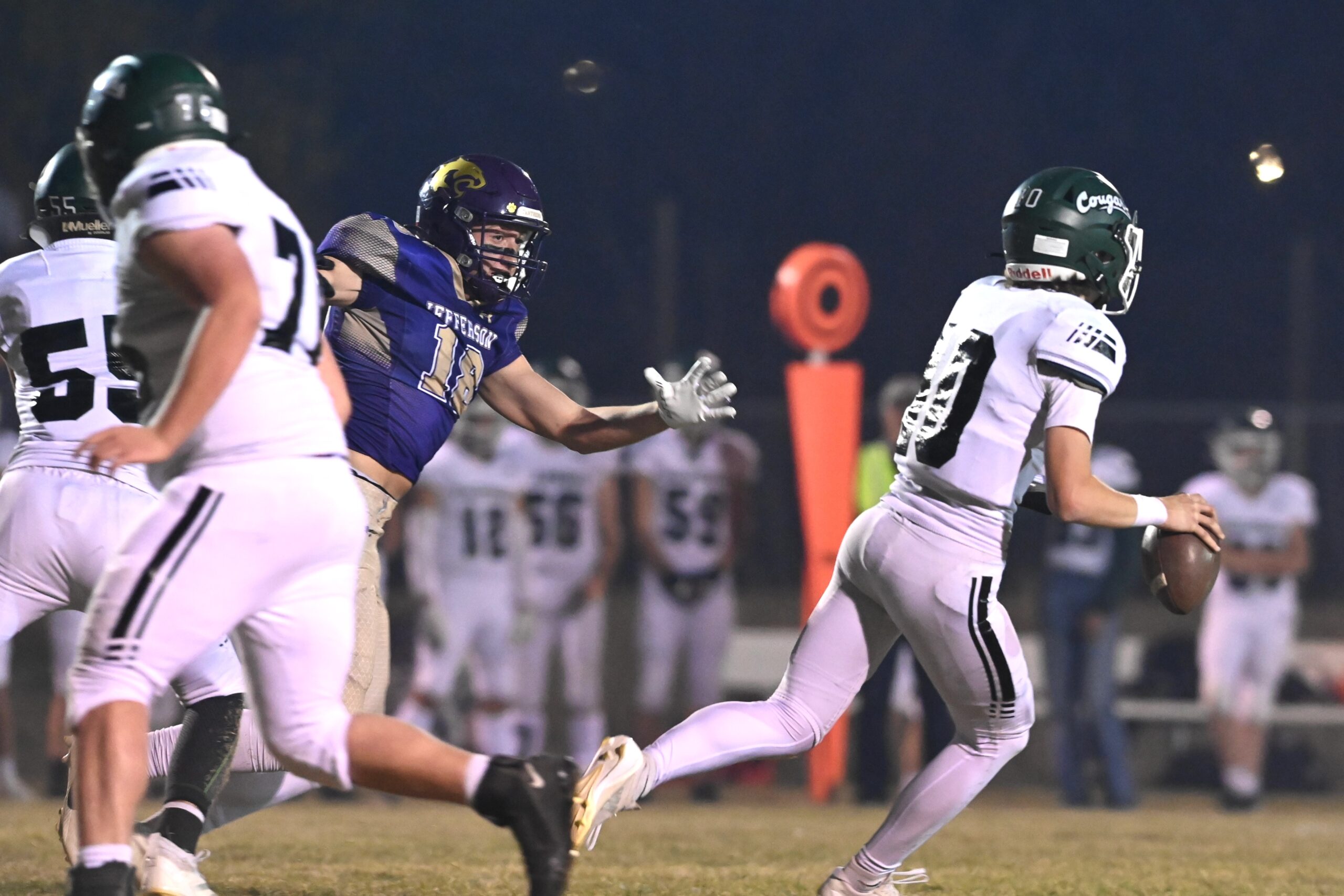 TOP: Panther defensive end Tavin Charlton gives chase to Columbus quarterback Colter Chamberlain in Jefferson’s 17-12 win on Oct. 3.