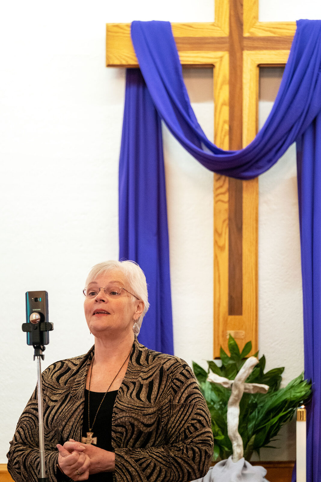 Pastor Val Colenso begins the Palm Sunday service via Facebook Live from Clancy United Methodist Church Sunday, April 5. She was accompanied by Kyrie Russ on piano and vocals.