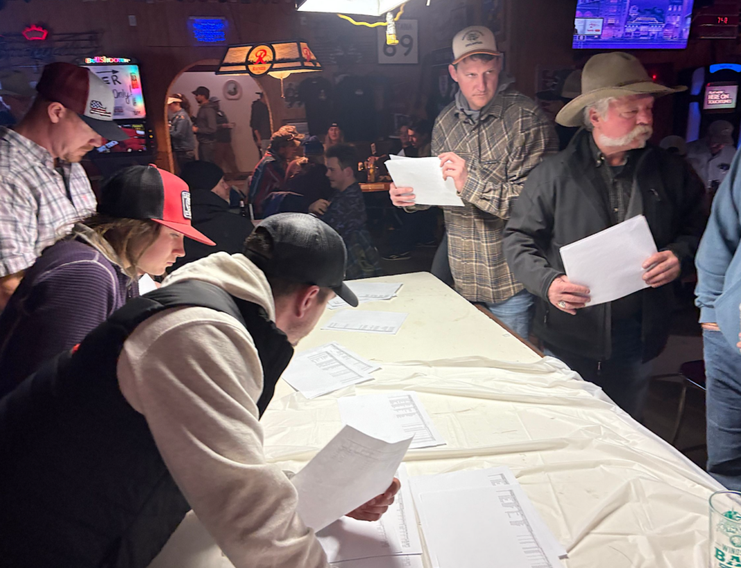 Every seat was filled at the Windsor Bar Saturday night, leaving patrons spilling into walkways and squeezing past one another with drinks in both hands. After a two-hour delay due to a computer glitch, the bettors’ auction, or Calcutta, for Skijoring the Big Rock had begun.
