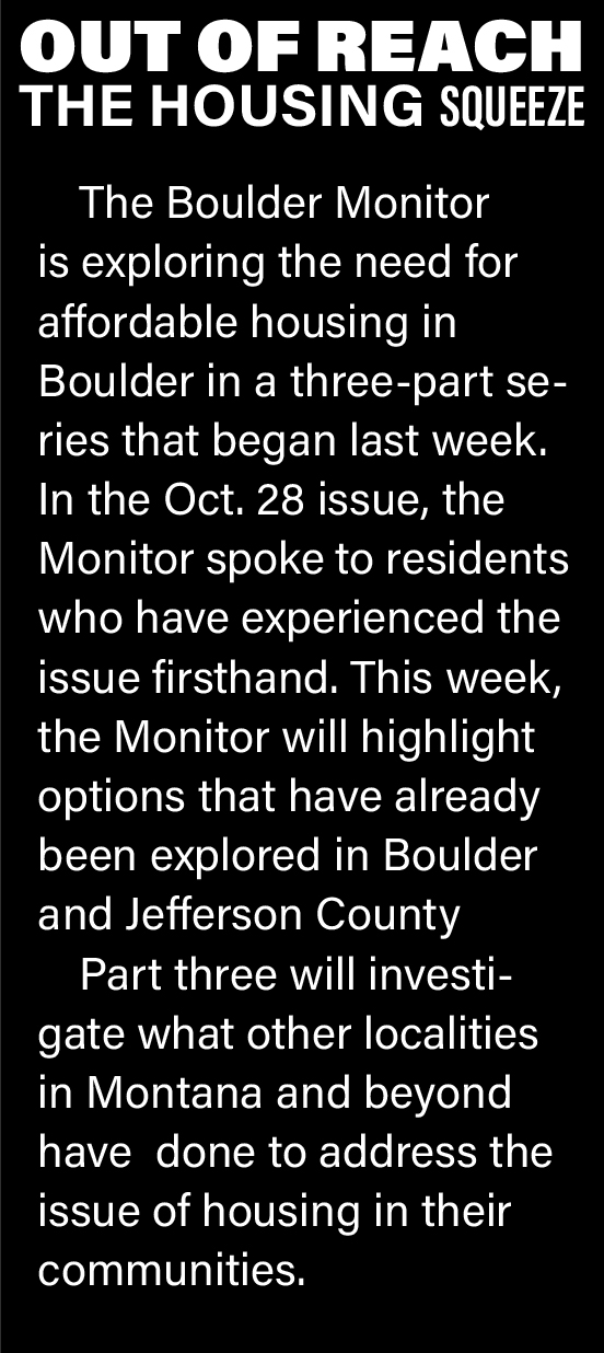 Housing in Boulder has long been a challenge. Compared to many places in Montana, affordable rentals or home purchases are in short supply. Barbara Miller, executive director for the Butte-based National Affordable Housing Network, and who has worked for years to help families buy affordable homes Boulder, sums up the city’s situation.