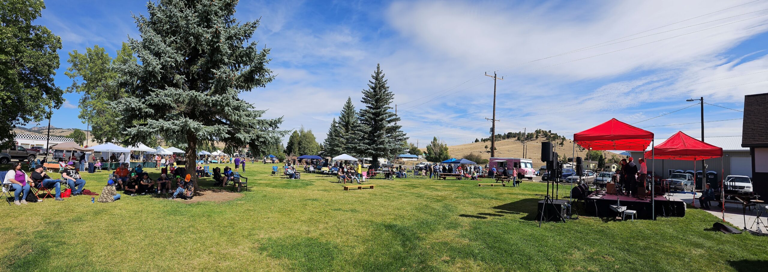 Then, the sound of music began filling Veterans Memorial Park, as the Boulder Area Chamber of Commerce’s annual Music and Arts Festival kicked up. Six different groups of performers played to a large gathering of appreciative listeners. Some found shade under the trees in the park, while many chose to sit and bask in the warm late summer sunshine on a nearly perfect weather day. “I ordered this weather just for this show,” said Master of Ceremonies Bruce Binkowski, the county’s events director.
