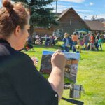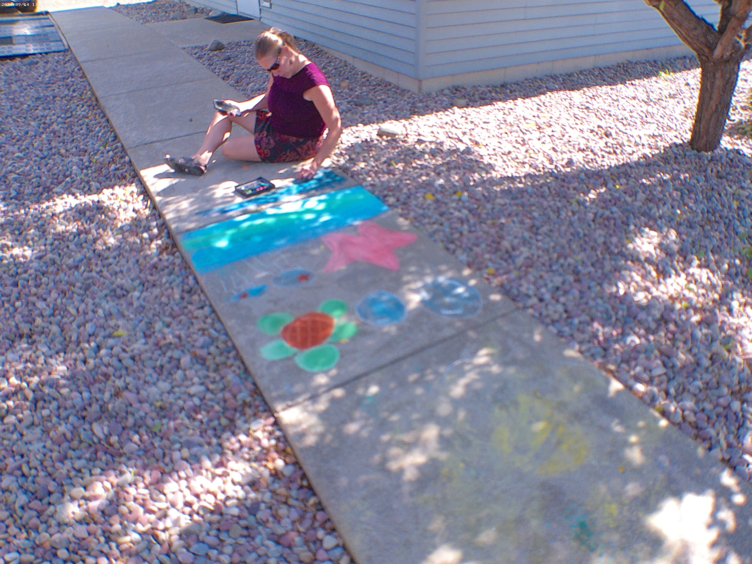 Unfortunately, the weather played art critic, blurring some of the early efforts with a wash of rain. But dedicated artists returned on Saturday, touching up their works and creating new colorful images on their hard gray canvases.