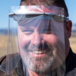 Jefferson County disaster and emergency services coordinator Doug Dodge on April 16 models a face shield made and donated by Bridger Aerospace of Bozeman. The shield is to protect first responders from being infected with the novel coronavirus or COVID-19, the disease it can cause.
