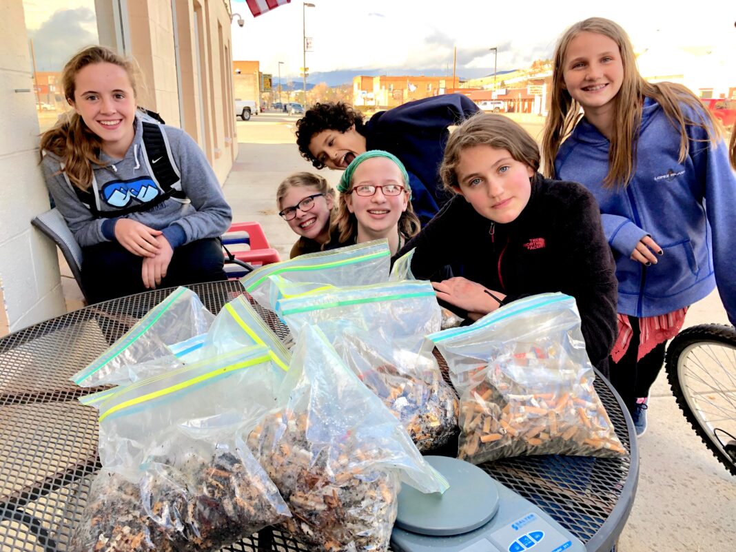 Boulder Elementary School students — from left, Jessie Harris, Isabella Gasch, Stants Sherman, Reyna Auch, Madison Mitchell and Genna Strozewski — pose with bags filled with cigarette butts and other “tobacco trash” they collected on the annual “Kick Butts Day,” April 11. The students are members of the reACT Club, a youth-led club that takes a stance against corporate tobacco. “We went from Town Pump and past the Boulder River,” said fifth-grader Madison Neely in a statement provided by teacher Rochelle Hesford. “As a club we found five and a half pounds of cigarettes and that is a lot! We do this because it helps teach us about helping our community and the environment.” The group is pictured in front of Boulder restaurant The River, where they were treated to a pizza and ice-cream party. The reACT Club is part of the school’s service learning program, for which the school held a taco dinner and presentation in the gym on May 2.
