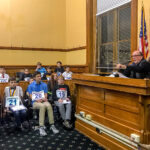 Jefferson County Events Coordinator Bruce Binkowski, right, was the spelling bee’s announcer. Judges were Sarah Layng of Jefferson High, Jennifer Goehring of Clancy School and Boulder Monitor Editor John Blodgett.