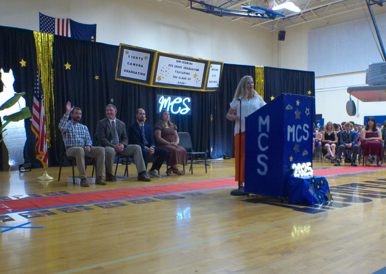 Montana City School graduated its 8th graders the next day, again in a packed house of well-wishers. The 56 graduates included 22 recognized for outstanding academic achievement, including President’s Award honorees Gabe Allen, Kendall Foley, and Cooper Pekovich.