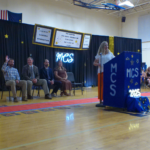 That award is presented to students who maintained a 3.5 grade point average throughout 6th and 7th grade and the first semester of 8th grade. Several graduates spoke at the podium in pairs, recounting school experiences from each year, including the disappointments of 4th grade, when the pandemic prevented some annual class trips.