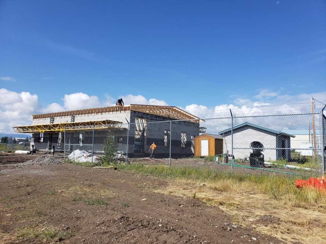Construction continues on the Wilsall Water District’s water treatment plant on Aug. 7. (Photo courtesy of Sadie Collins).
