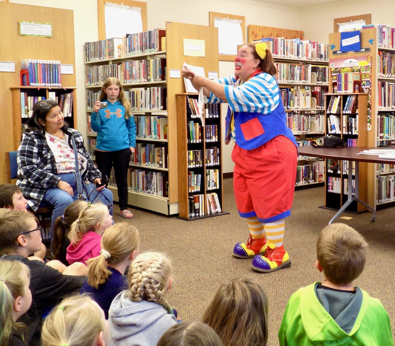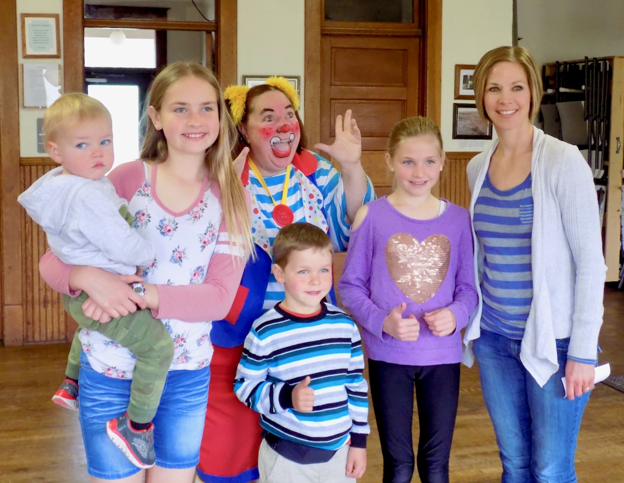 Skeeter the Clown helps Nora Sarchet balance a feather on her finger at Boulder Community Library on June 20. Skeeter the Clown performs at Boulder Community Library on June 20. Skeeter the Clown from the Culpepper & Merriweather Circus performs at Boulder Community Library on June 20. The Circus will be in Boulder for two shows on June 27 — 5 p.m. and 7:30 p.m. — in the field next to the Boulder-Bull Mountain Volunteer Fire Station on Highway 69 just south of town. Skeeter the Clown poses with the Runde family at the Jefferson City Community Center on June 20....