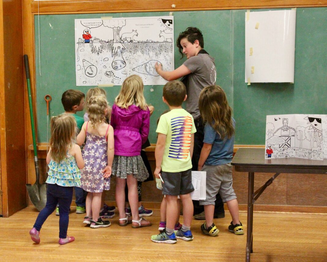 Twelve-year-old Maloi Lannan explains regenerative agriculture to a group from Discovery Kidzone Montessori School in Clancy using a blown-up picture from her coloring book, “Don’t Call It Dirt,” at the Clancy Library on June 28. Regenerative agriculture is a way of farming and ranching that is conscious of the organisms that live in the soil to capture carbon found there to reduce the amount of carbon accumulating in the atmosphere.