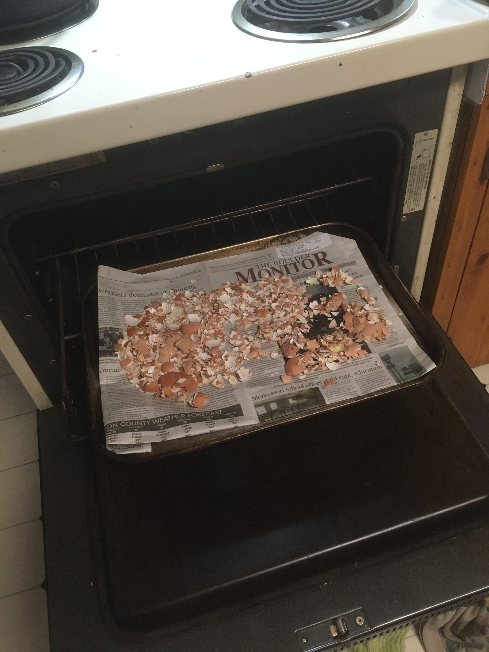 I use my newspapers to dry out my egg shells before I crush them finer to feed my chickens. Place the paper on a baking sheet, scatter crushed egg shells on top of it and bake slowly for about 20 minutes at 200 F.
