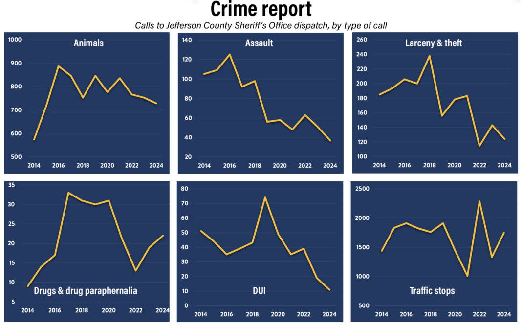 New emergency call data indicate that reports of crimes in Jefferson County are going down — across categories, and in some cases by a lot. The question is, why?