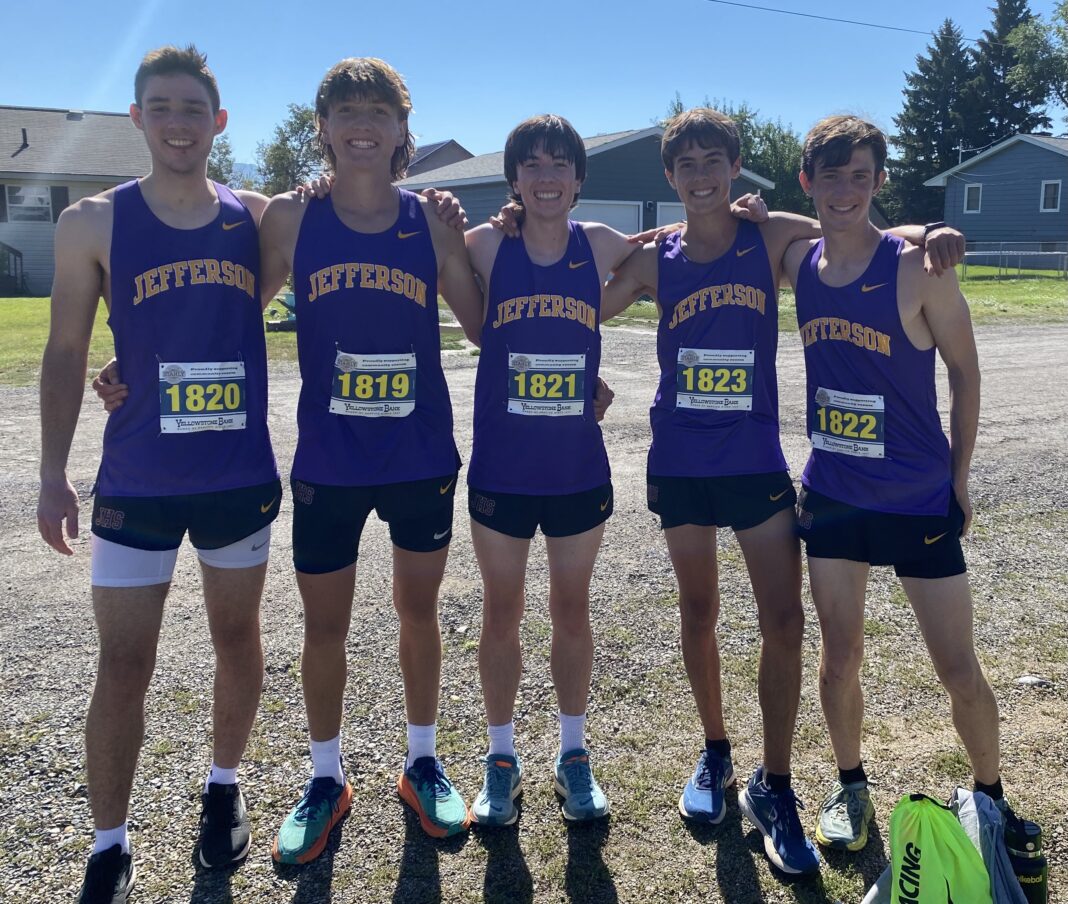 Jefferson High Cross Country’s “fab five” runners, consisting of seniors Luke Mest, Logan Hornung, Christian Gillmore, junior Dominic Hurlbert and sophomore Mack Boyd showed during their home opener on Saturday, Aug. 26 why they believe they have what it takes to win state this year, as three of them placed in the top five on their way to win the meet, and all of them scored personal bests on what JHS Cross Country coach Karson Klass said is one of the hardest courses in the state due to the elevation involved (around 200 feet).