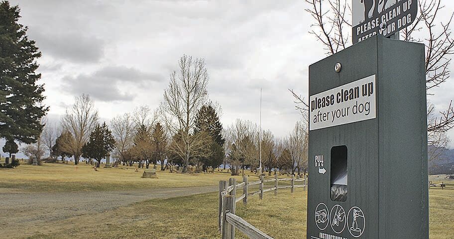 The City of Boulder, with the assistance of the Animal Shelter and Care Committee, maintains a dog waste station at the Boulder Cemetery. (Diana McFarland/Boulder Monitor).