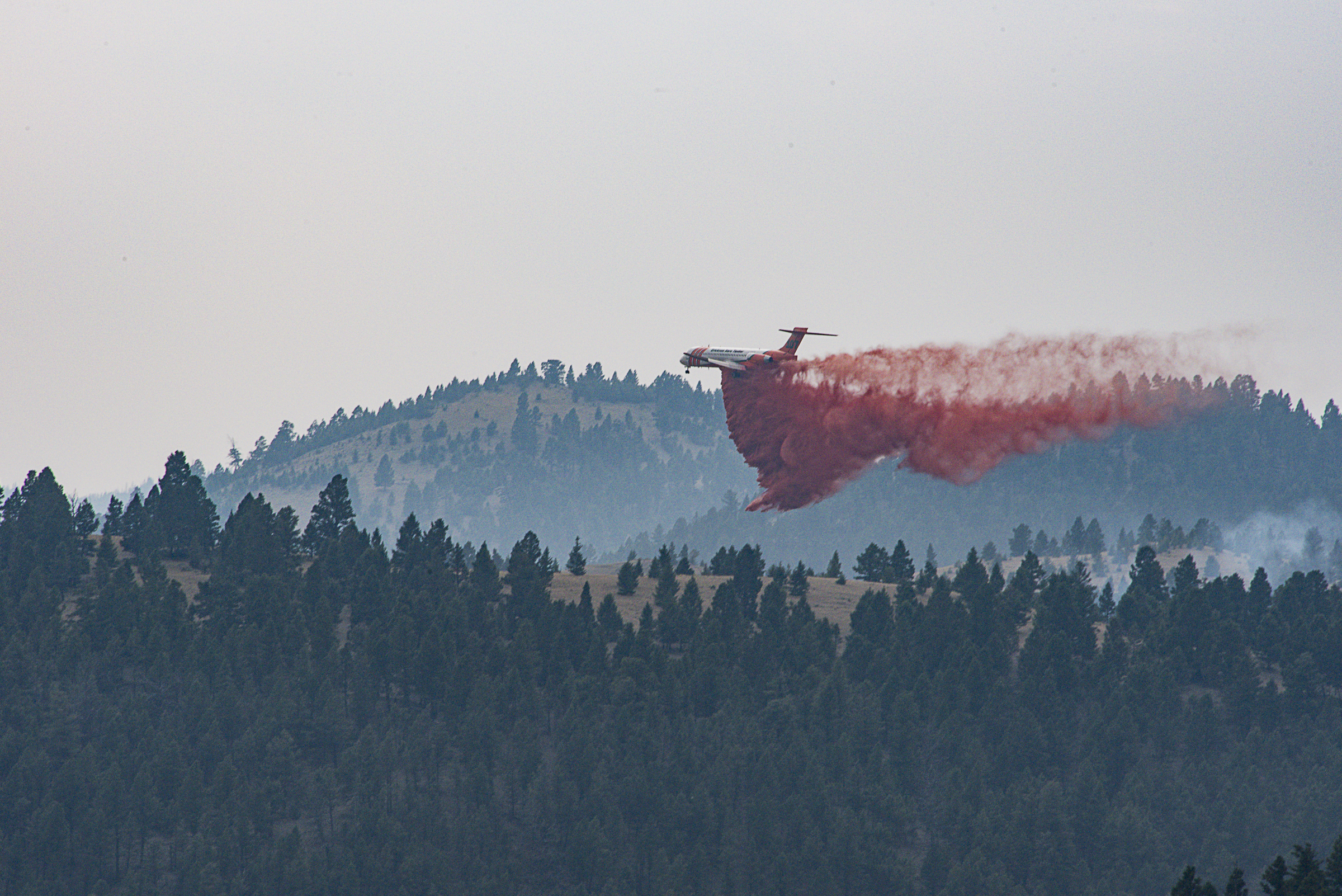 On Saturday, Co-Incident Commander Shane Martin said, three tanker planes dropped fire retardant in a line from just south of I-15, behind homes along Cattle Drive Lane, going southeast behind homes off of Little Boulder Road.