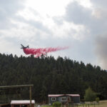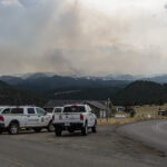 On the east side of the fire, “when the conditions are right and in our favor, we’ll look at potentially doing some burning on our lines … so we can try and stop it on the west side of the Whitetail Road,” Martin said, adding that the southwest front of the fire, near Elk Park and the fire’s ignition point on Haystack Peak, is being monitored by one engine with personnel in Elk Park, and that “we don’t have much [fire activity] going on there.”