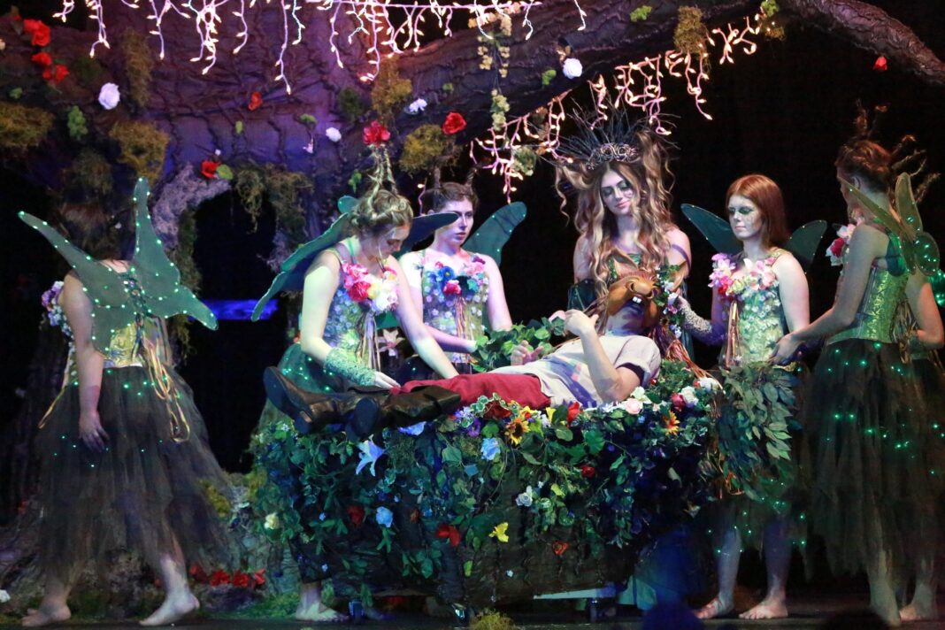 Music reminiscent of a medieval tavern or Lord of the Rings film drifted across the auditorium as chattering theatergoers filed in to see loved ones in Jefferson High’s production of the Shakespeare classic A Midsummer Night’s Dream.