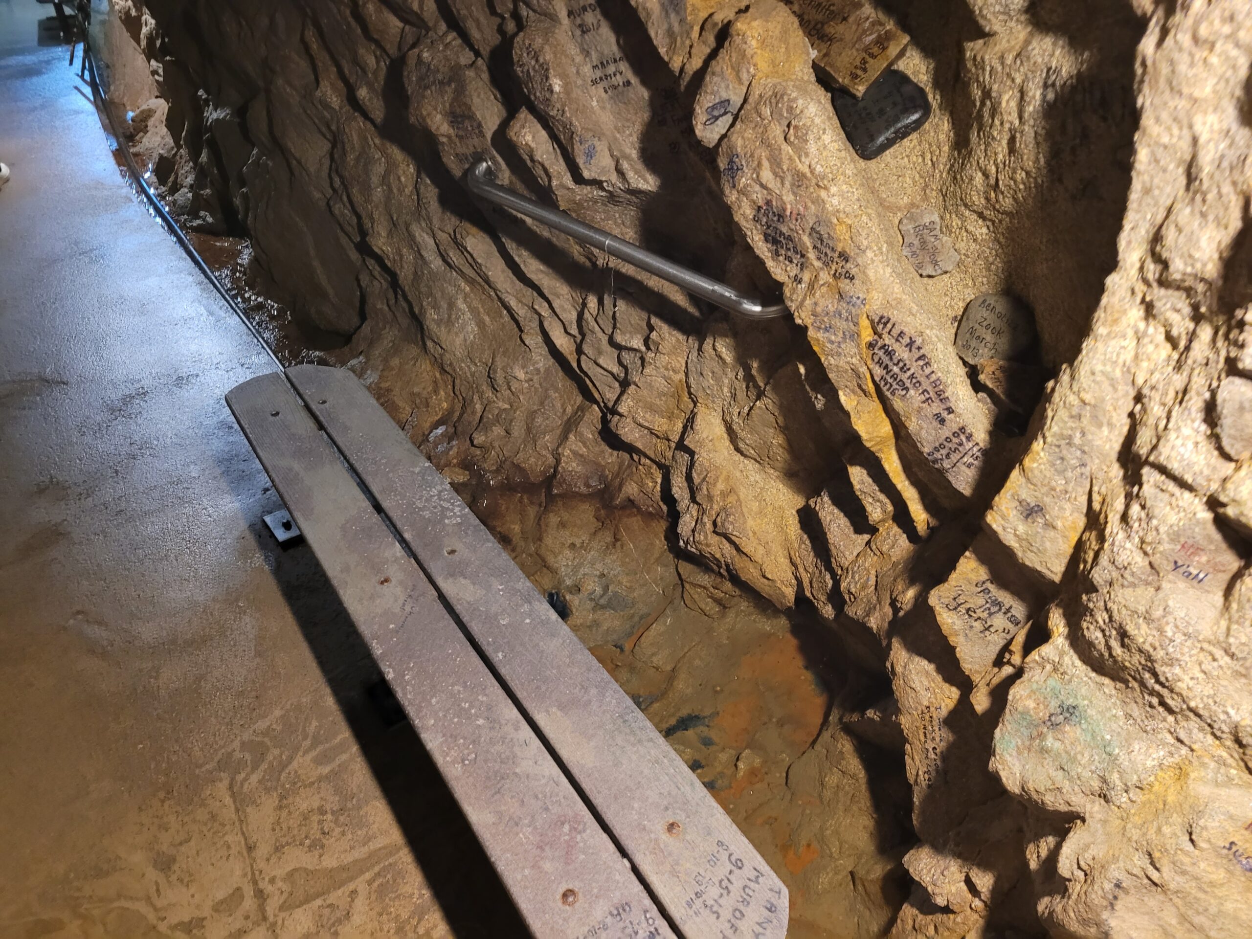 A brief excursion into the mine shaft reveals many signatures, painted rocks, and other mementos left by previous visitors who soaked their feet in the natural radon-laced spring waters. The interior remains a constant 40 degrees all year long. “So, people can come into the cool when it’s hot outside, and come in where it’s not so cold during the winter,” Ester Kirsch says. There are chairs and benches in various nooks of the mine, with books and games to pass the time during their healing visit.