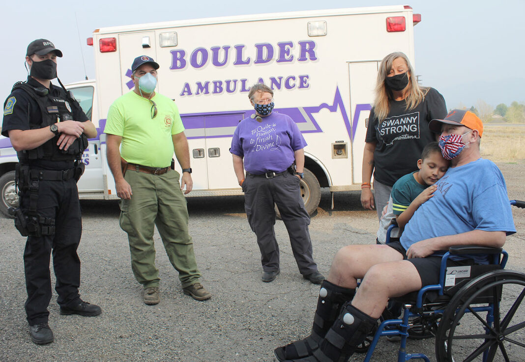 Now back home in Helena after weeks in the hospital, Swanson, 58, his wife, Amy, and grandson Kingslen, returned to Boulder on Sept. 17 to thank those who were first to arrive at the accident and help him to safety.