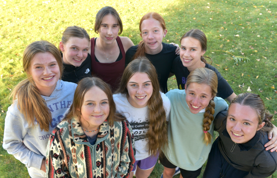 Jefferson High's girls cross country team, front row: Maylea Dawson, Piper Dawson, Ava Carey, Natalie Russ. Back row: Peyton Stearns, Emma Ahlers, Isabelle Warren, Juliet Bell and Rebekah Warren (Keith Hammonds/The Monitor).