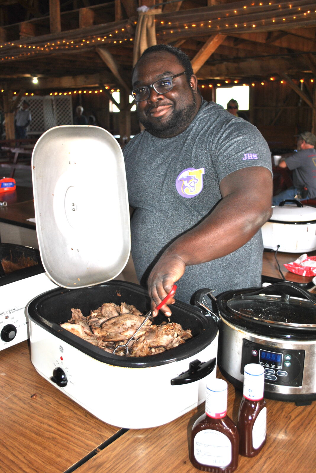 But on the Saturday night of the County Fair, he and Dave Deskins, head custodian at the Boulder Elementary, will go larger, serving up a barbecue dinner for 200-plus visitors. The annual dinner raises funds for the Jefferson High’s band and choir.