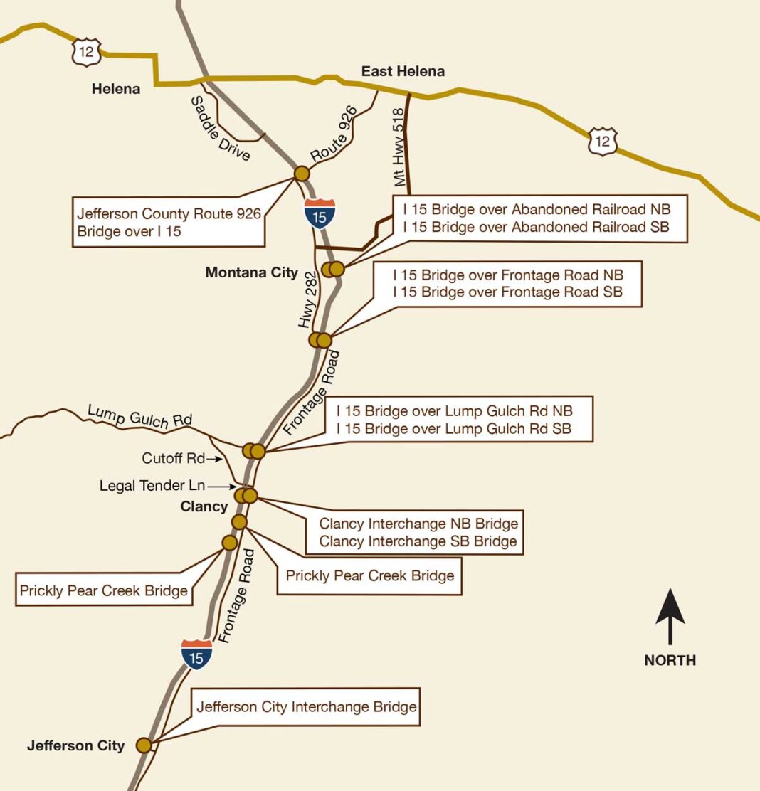 The most visible of these projects is the continued work on bridge rehabilitation on Interstate 15 between Helena and Boulder. This work is the continuation of the bridge rehabilitation project that began last year with work on the overpasses in Jefferson City and Clancy, according to the Montana Department of Transportation (MDT) web site.