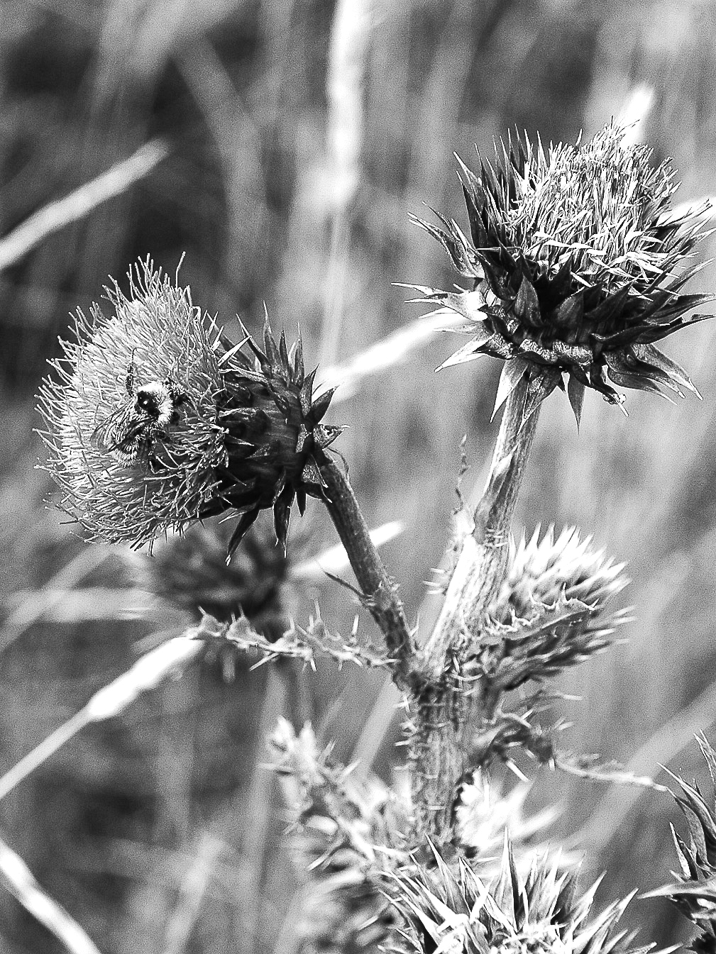 of its spines. Where it grows, grazing animals must forage more heavily on other plants, reducing their vigor, which allows musk thistle to invade ever more space.