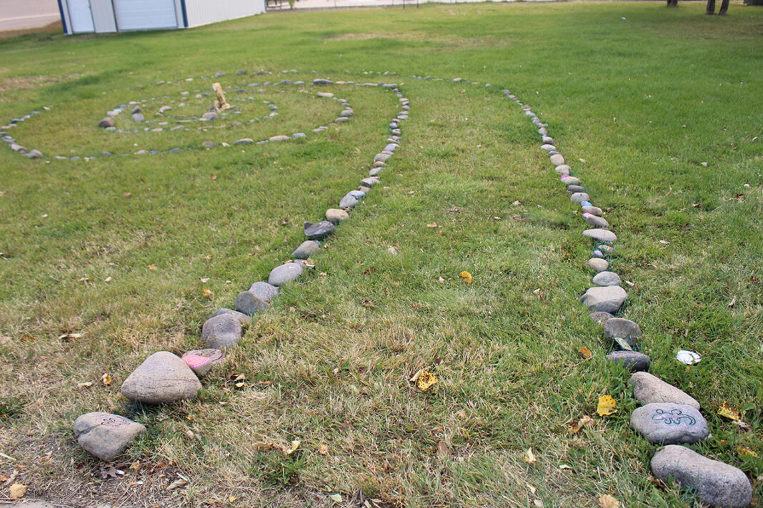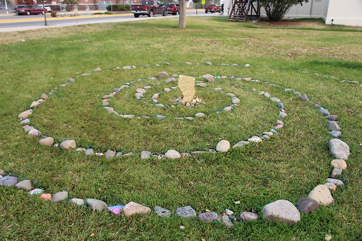The Jefferson High School sculpture class created this interactive piece located at the school along highway 69. The spiral design is based on Robert Smithson’s “Spiral Jetty,” which is located in Salt Lake City, said art teacher Emma Ehret. “We wanted to create an inspirational interactive sculpture so we painted rocks with bright colors and patterns as well as rocks with inspiring words and phrases. During this hard, confusing time, it is important to see and focus on the good in all that is going on around us. I wanted my students to work collaboratively to create something that would bring joy to the community. The gold in the center represents the significance of each one of us, how we are all unique, important, and each offer something different to bring to the table,” she said.
