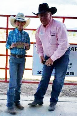 Brady Nordahl, left, is the all-around women's in-county winner and Arena Faler, right, is the winner of the Bert Howey traveling saddle. Faler was also the all-around winner of the in-county children's rodeo.