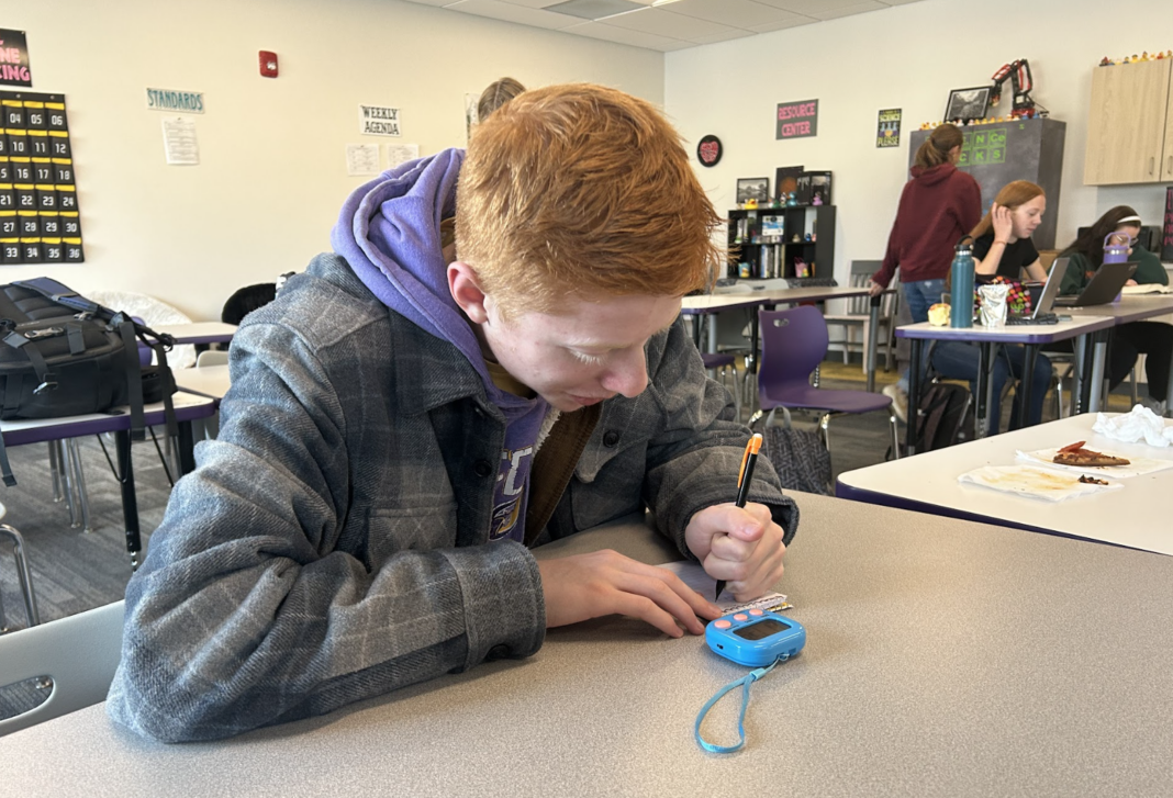 Junior Hudson Hill prepares for his impromptu speaking competition. (Piper Heath/The Monitor.