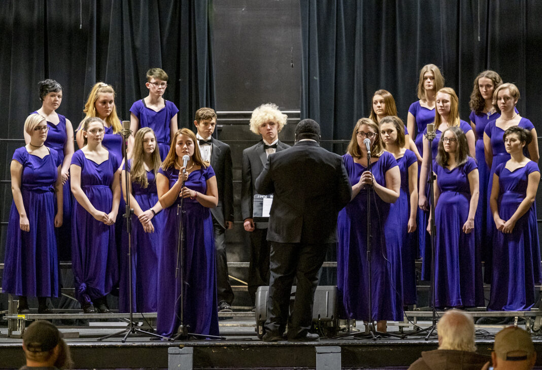 Jefferson High School music director Matt Bowman, center, leads the choir in its fall concert in the school’s south gym Monday night, Oct. 28. Accompanying them on piano was Melissa Norris.