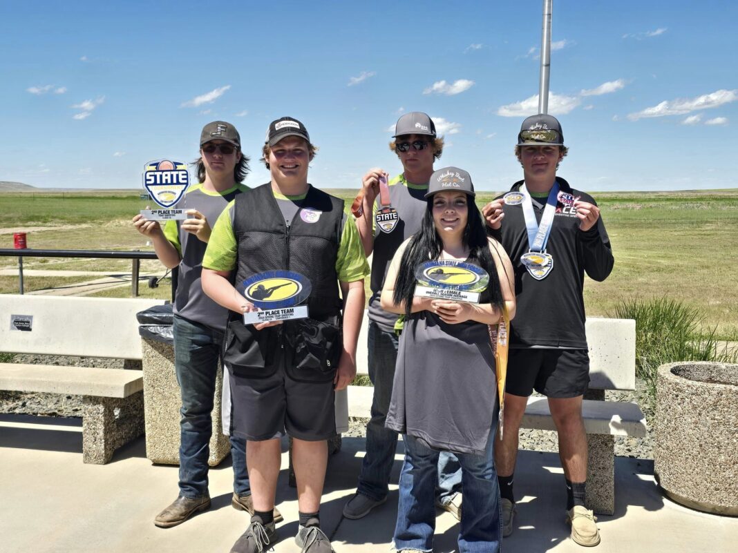 The Jefferson High target shooting shooting team with awards from the Montana High School Clay Target League State Shoot on June 8 in Great Falls. FRONT: Kale Strozewski and Jaden Pelland. REAR: Bronco Taylor, Andrew Mosher and Auston Parmer.