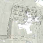 A plot plan of the Family Dollar Tree store under construction on the former south campus of the Montana Developmental Center. The plan shows the location of the old Building Six in white.
