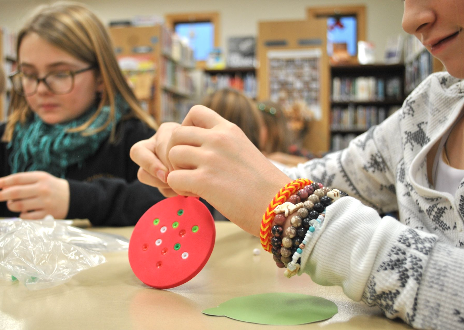 The Christmas spirit was strong at the Boulder Community Library last Tuesday as 10 children aged four to 11 joined librarian Krystal Lange to make holiday-tree ornaments.