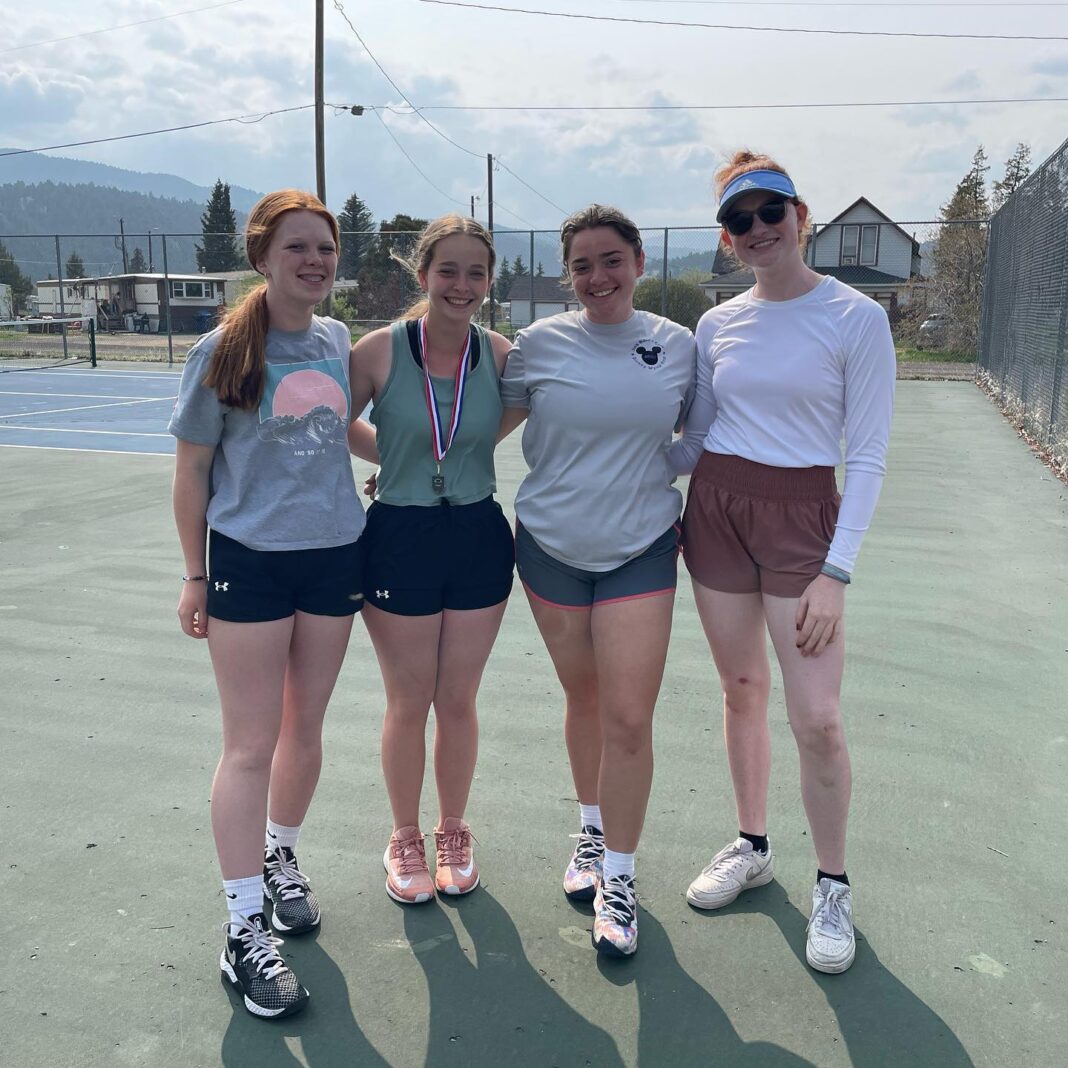 From left to right: Bailee Silvonen, Morgan Knickerbocker, Aliza Hays and Grace Quigley pose at practice after qualifying for the 2023 State B-C Tennis Tournament.