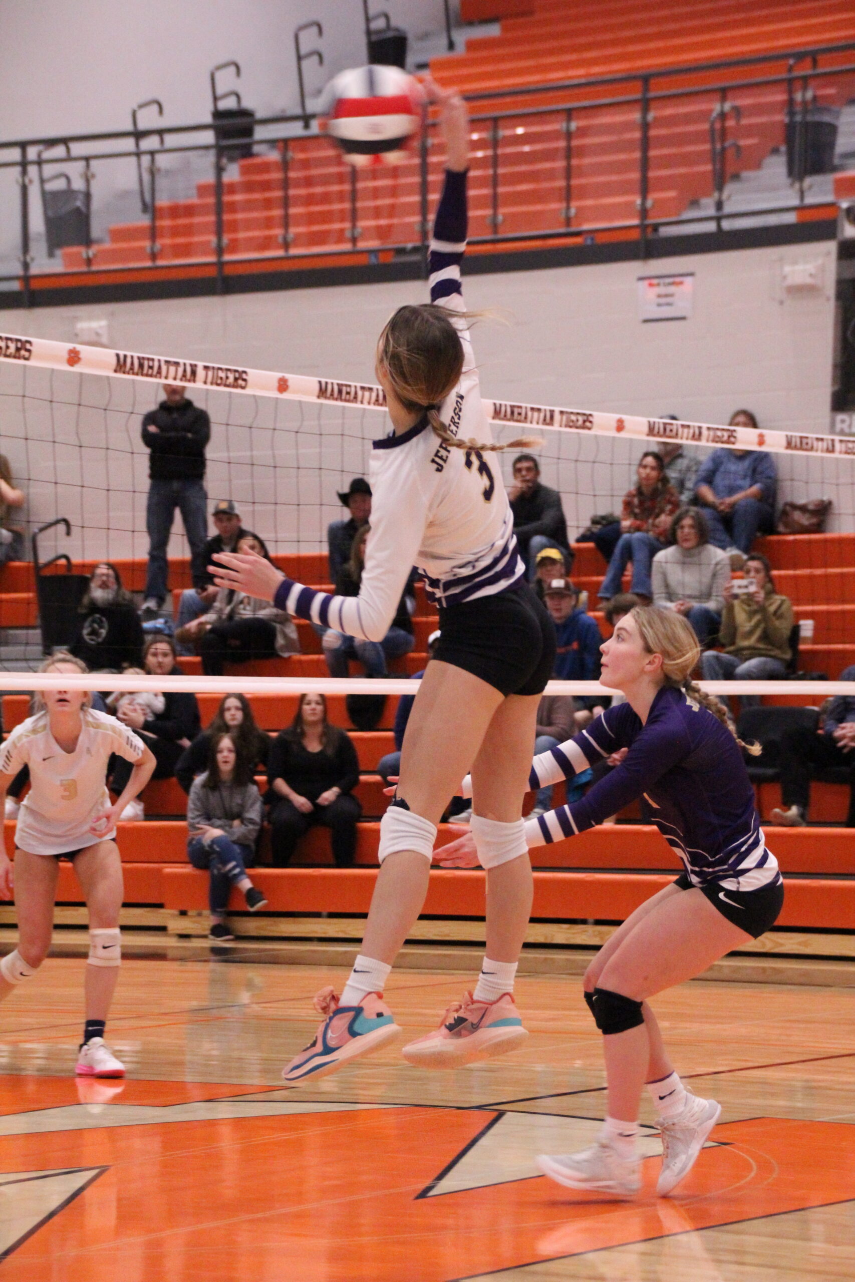 The fourth set remained neck-in-neck until junior Haleigh Henschel serves brought the team up 15-12. From the Lady Panthers maintained their lead using junior Avery Popp to serve the team to 23-16. Jefferson won the set 25-17, battling in the fifth to win the match 15-12.