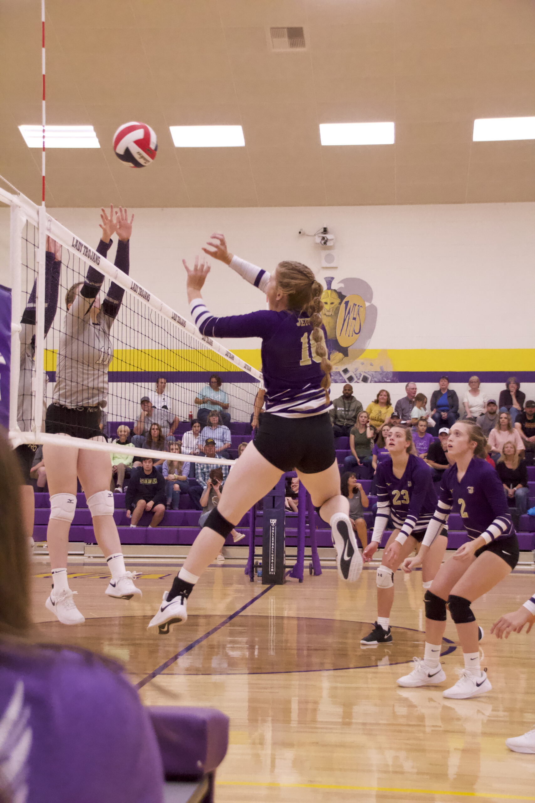 Sophomore Cameron Toney led the attack on the trojans with 21 kills throughout the course of the match. Junior MacKenzie Layng provided 27 assists  to the team. Layng’s extra assists went to fellow junior Arena Faler, who earned several well-placed kills.