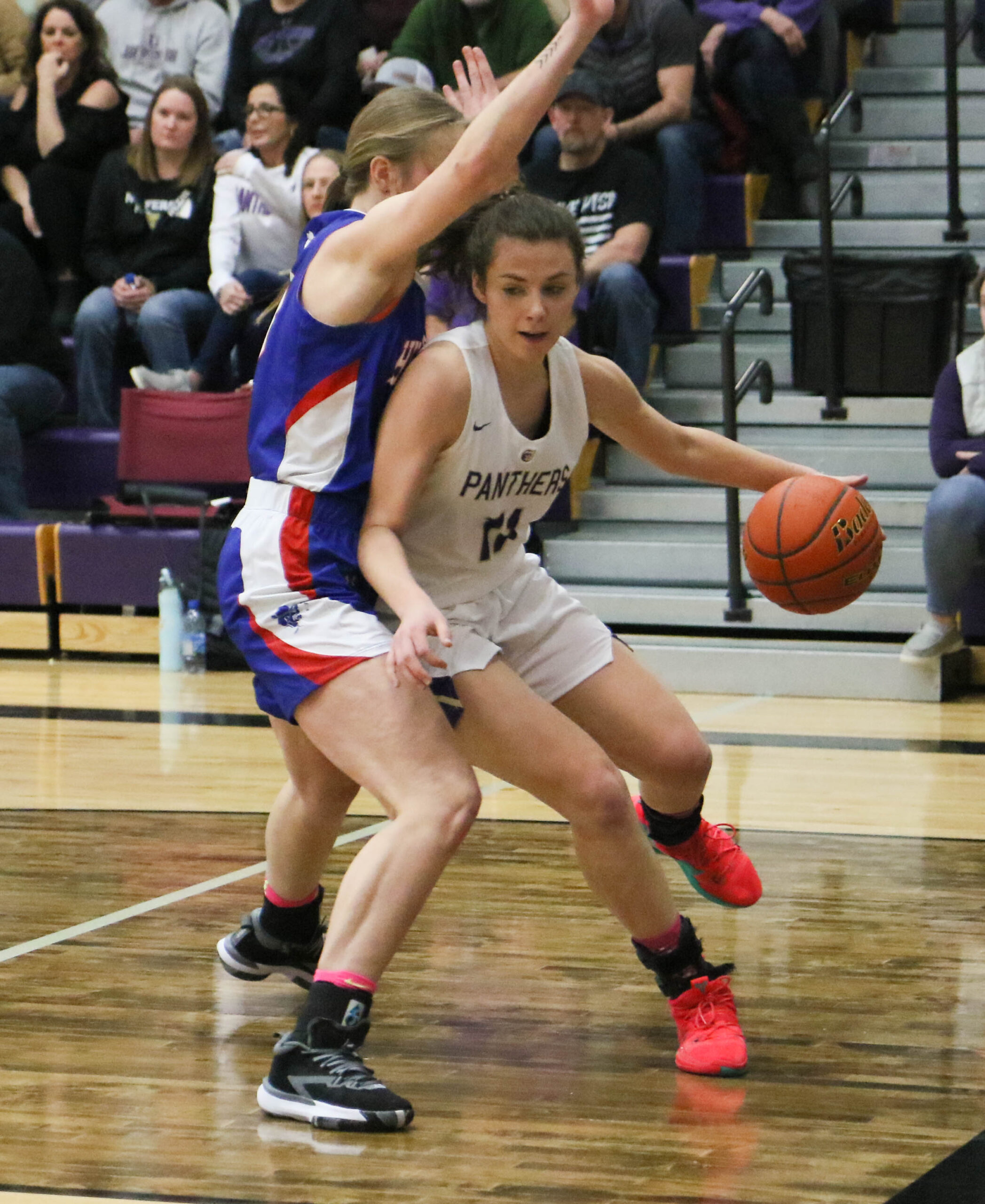 This was Senior Night in the Panthers’ home gym. And the first period was back-and-forth, as the Herders scored first with a 3-pointer, Cia Stuber answered with a 3-pointer, the next four points went to the Herders, Dakota Edmisten hit a 3-pointer, and Izzy Morris came back with 2 points to put the Panthers up 8-7.