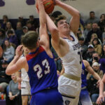 Dakota Edmisten shoots against the Sweet Grass Herders on Feb. 5.