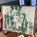 “Here’s a photo dated back to 1908,” she said, lifting a class photo taken by the Basin School’s front doors. “It says here on the back of the photo that ‘third row from the right is Isabell Lowry, and leaning by the post is Ned Lowry.’”
