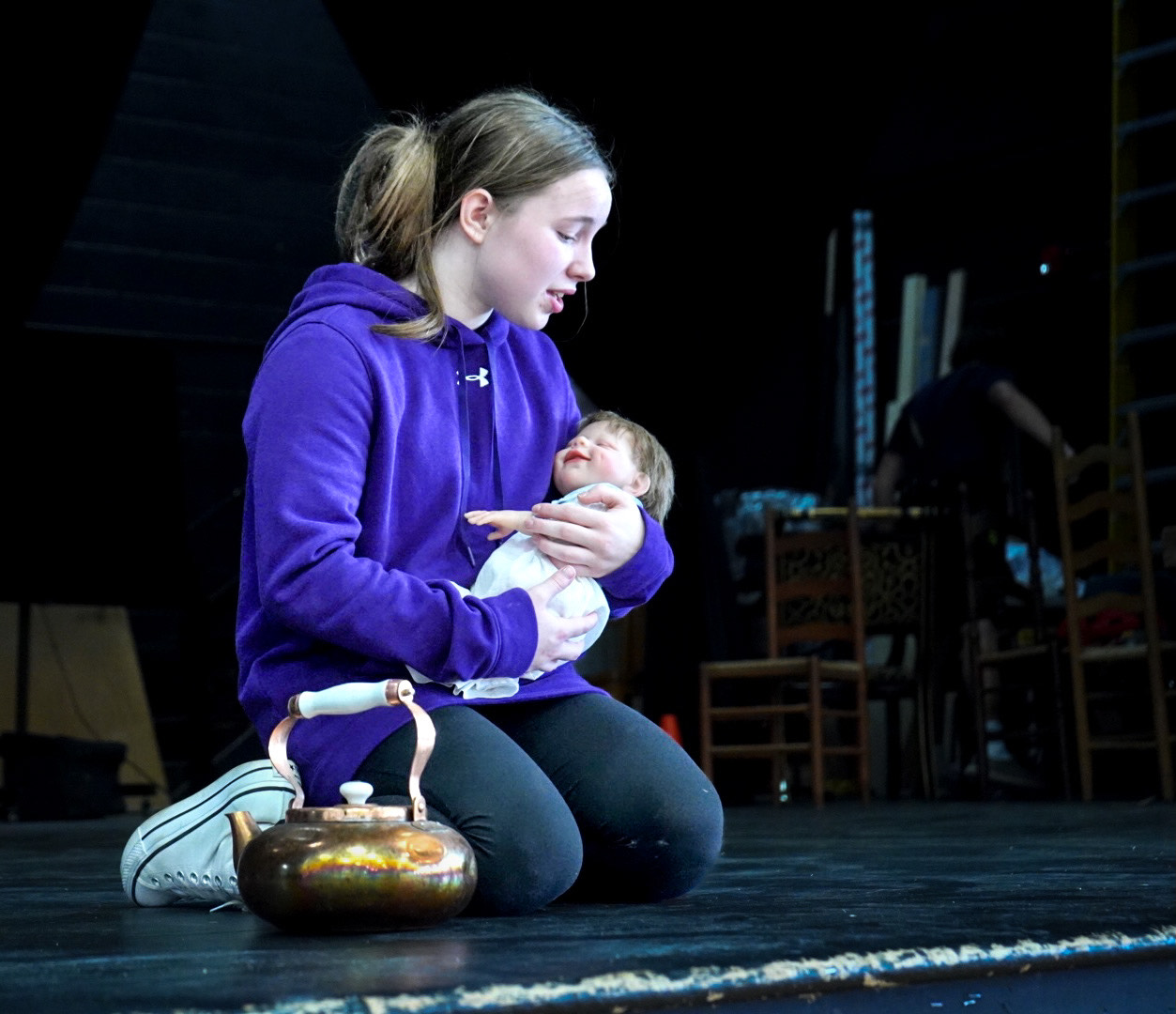 Students and graduates say Hesford understands how to meet every kind of aspiring performer where they are. He draws confidence from quiet first-year students as easily as he commands a cast of boisterous varsity athletes. “Getting involved in drama really helped with my confidence,” Rosenbaum shares during rehearsal. “I had to sing last year in a beginning drama play, and I had never sung in front of anyone before. It isn’t something that came naturally to me, but my confidence has grown so much… It’s helped with not only drama, but presenting projects in school, getting up in front of people — it’s really built me up in every aspect.”