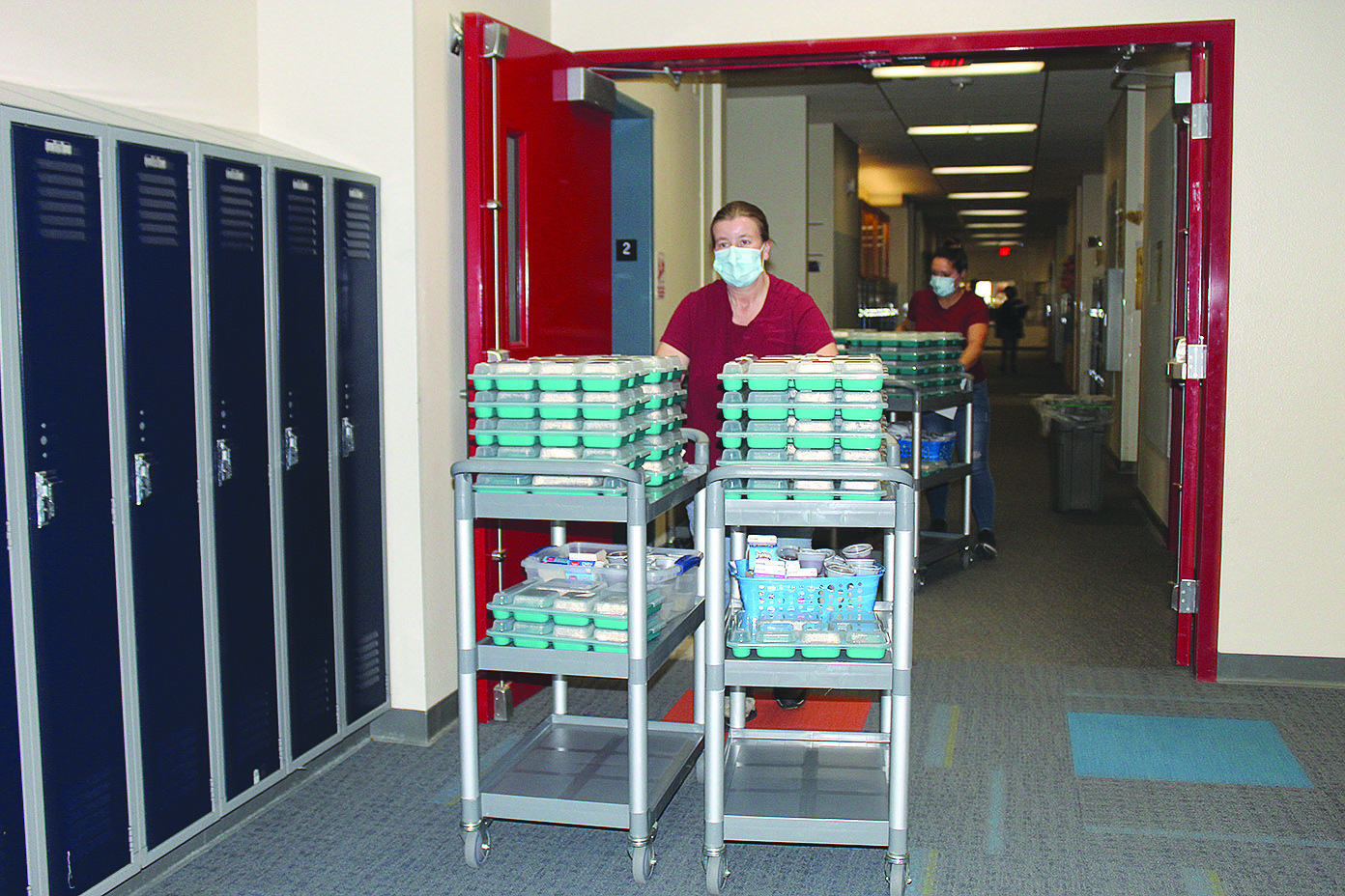 With the use of a centralized lunchroom shelved due to COVID-19 restrictions, the food service staff, led by Lauren Oelkers, had to reinvent how it carries out its mission.