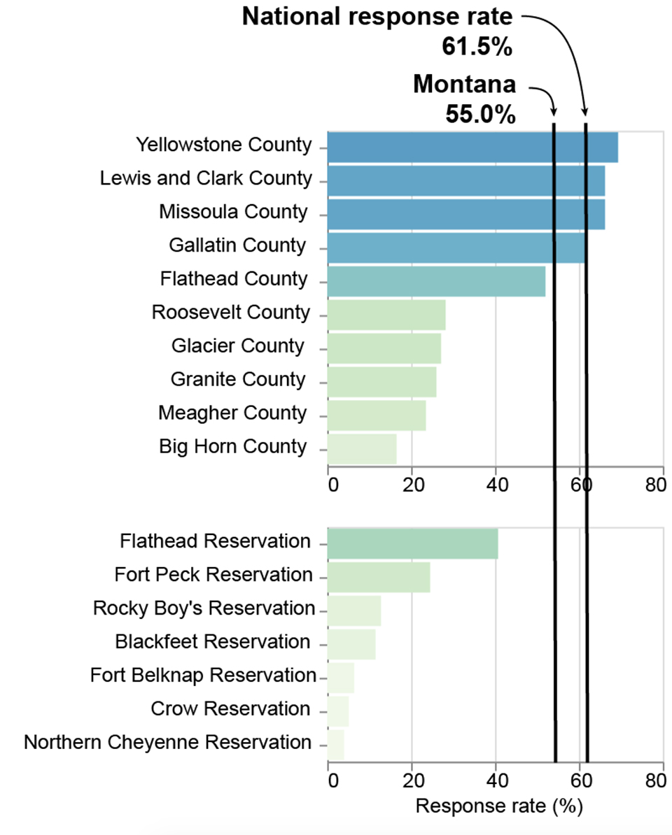 As of June 17, 55% of Montana households had returned census forms in either hard copy or via the internet. According to a U.S. census dashboard, that’s 6.5 percentage points behind the nation as a whole.