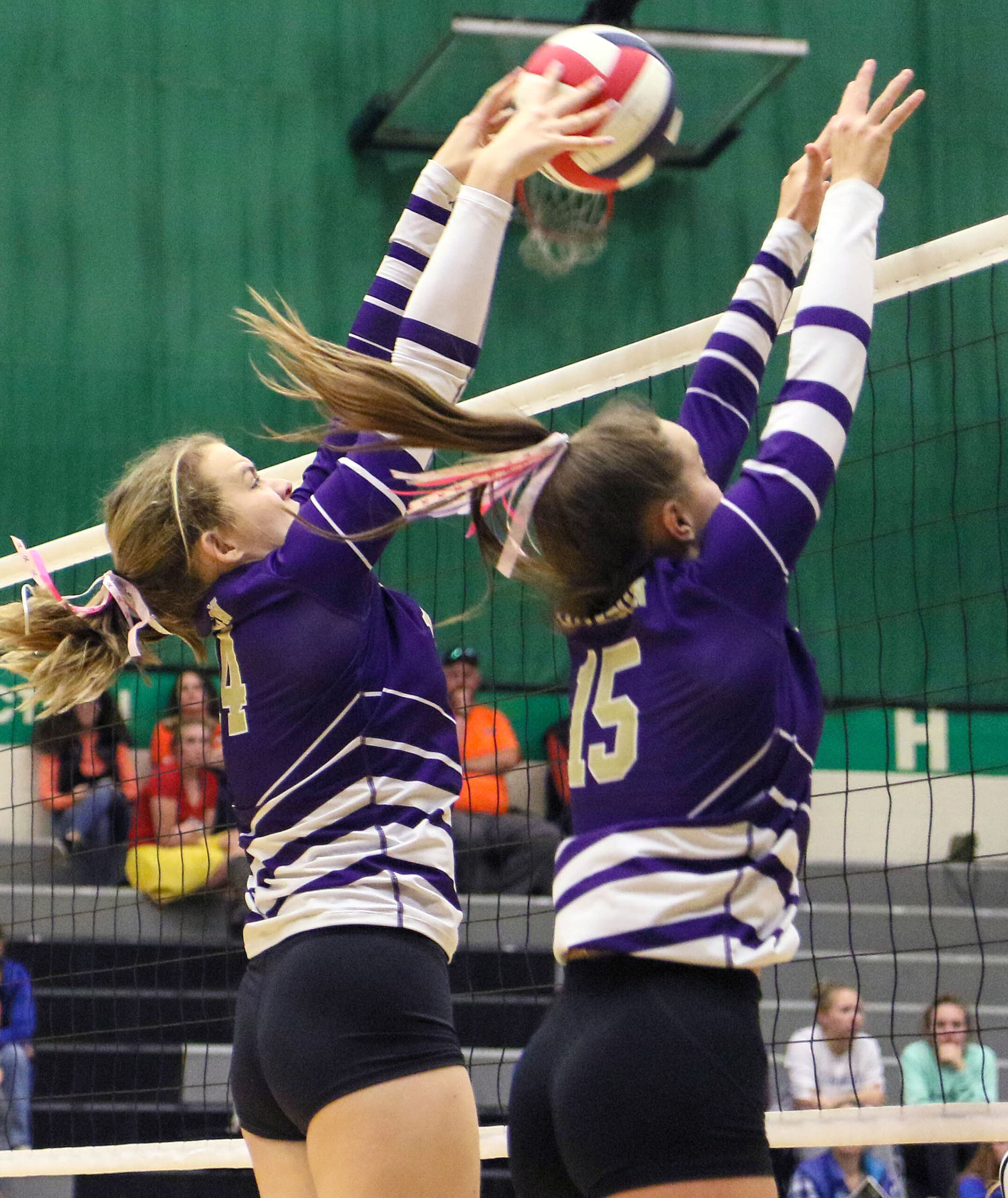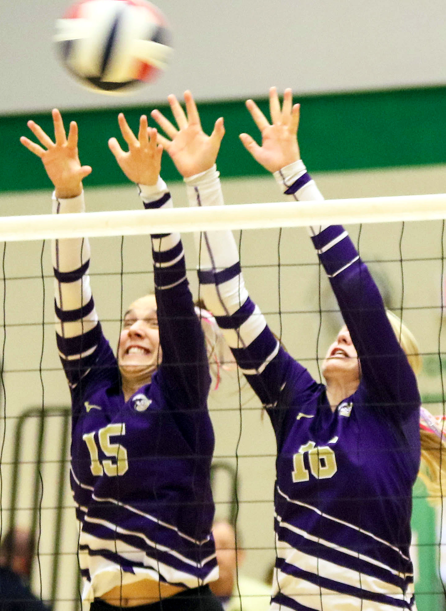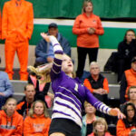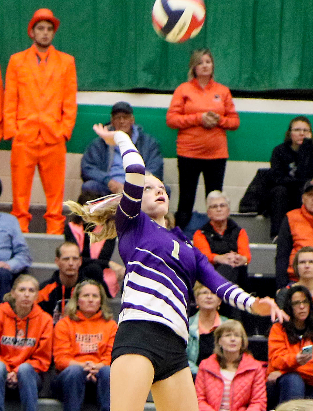 Next up was Manhattan. The Panthers and the Tigers had split during the regular season, and this match went all the way to five sets. Manhattan took the first two, 25-23 and 25-18. But Jefferson came back in a big way to win the third, 25-14, and the fourth, 25-21, then capped it with a 15-13 victory in the final set. Dakota Edmisten and Marks each had two aces, Dakota had 21 kills, Hope Dobyns seven blocks, Emma Grange 15 assists, and Alexander 23 digs.