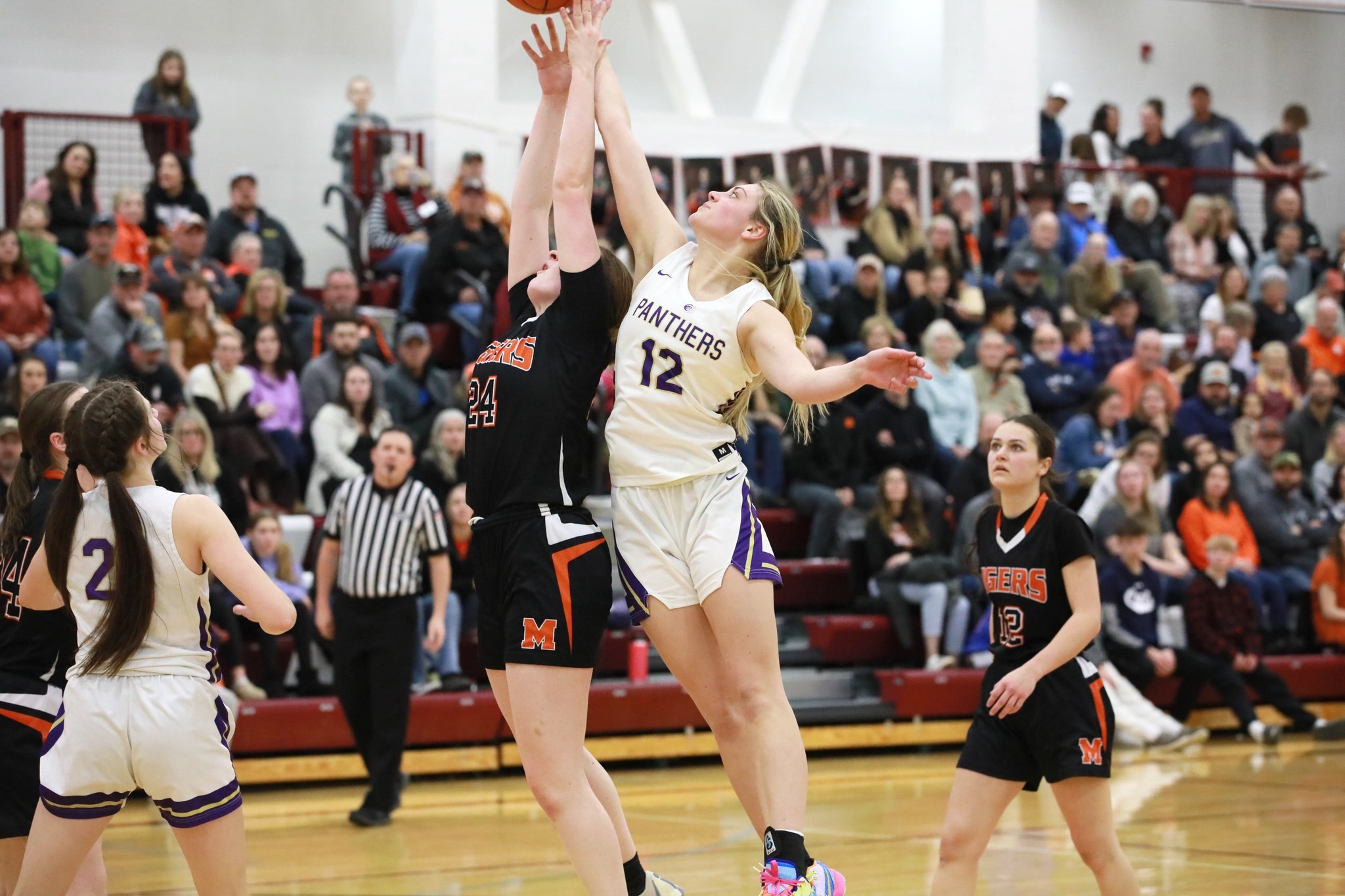 The Panthers put the pressure on early and jumped out to a 13-0 lead. A block by Cameron Toney and three free throws by Melanie Zitnick made it 16-6, and Brooklyn Miller made it 19-6 with three more free throws. At the end of one period, the Panthers were in control, 19-8.