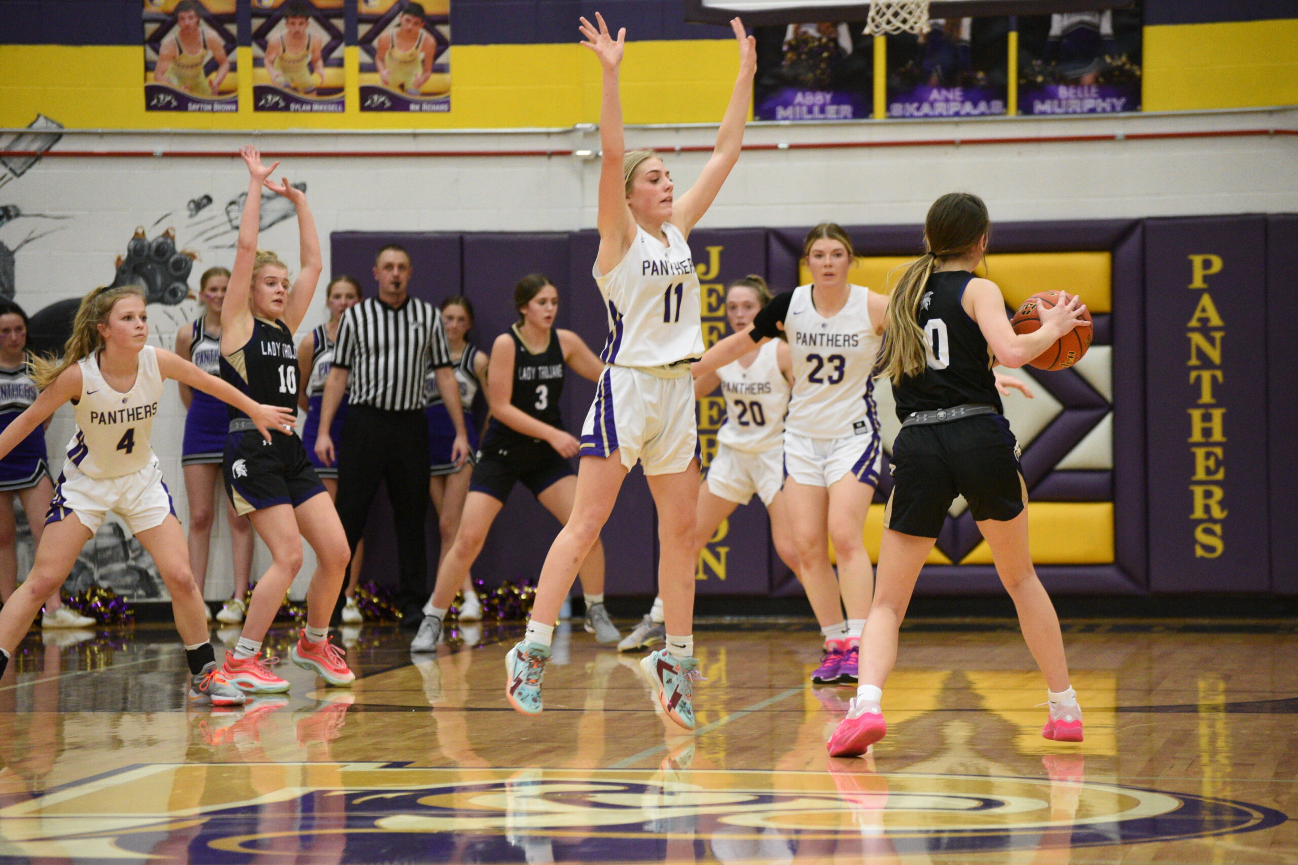 Arena Faler started the third with an old-fashioned 3-pointer and the younger Panthers saw lots of playing time, building the lead to 62-25 with 8 minutes to play. Ryian Eveland started the scoring in the fourth, Cameron Toney made a free throw, Jurenka swished a three and the Panthers nailed down the win. Layng led the way with 21 points, while Toney had 12, and Jurenka and Brooklyn Miller 10 each.