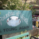 The entrance of the mine sits across from the Boulder River from the RV park and up a gradual gravel incline to the parking lot. A concrete retaining wall, painted green, surrounded by pink, purple and white flowers, with flowing white letters spelling “the fountain of youth” marks the entrance — a heavy wooden door with a metal handle.