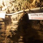 Benches are lined up in the back for people to sit, and temperature gauges hang on the rust-stained tunnel walls. Bathtubs, where visitors are allowed to soak, are hidden around corners and behind curtains.